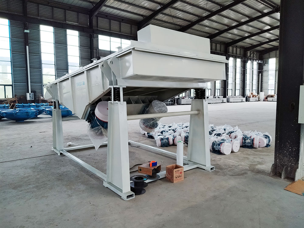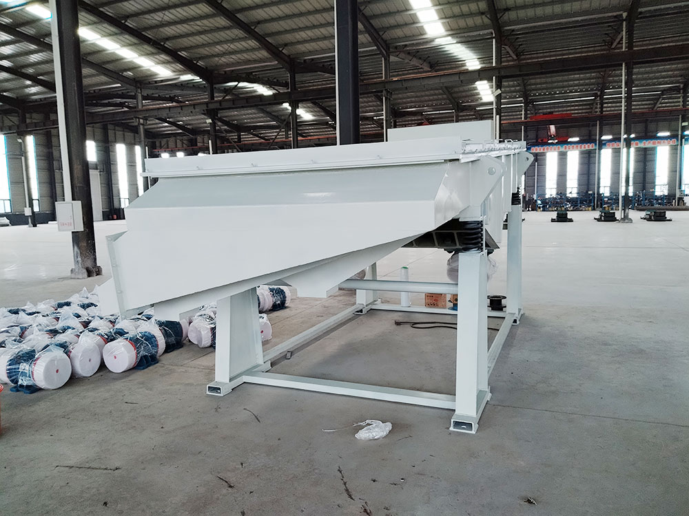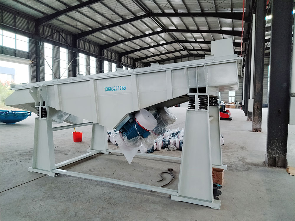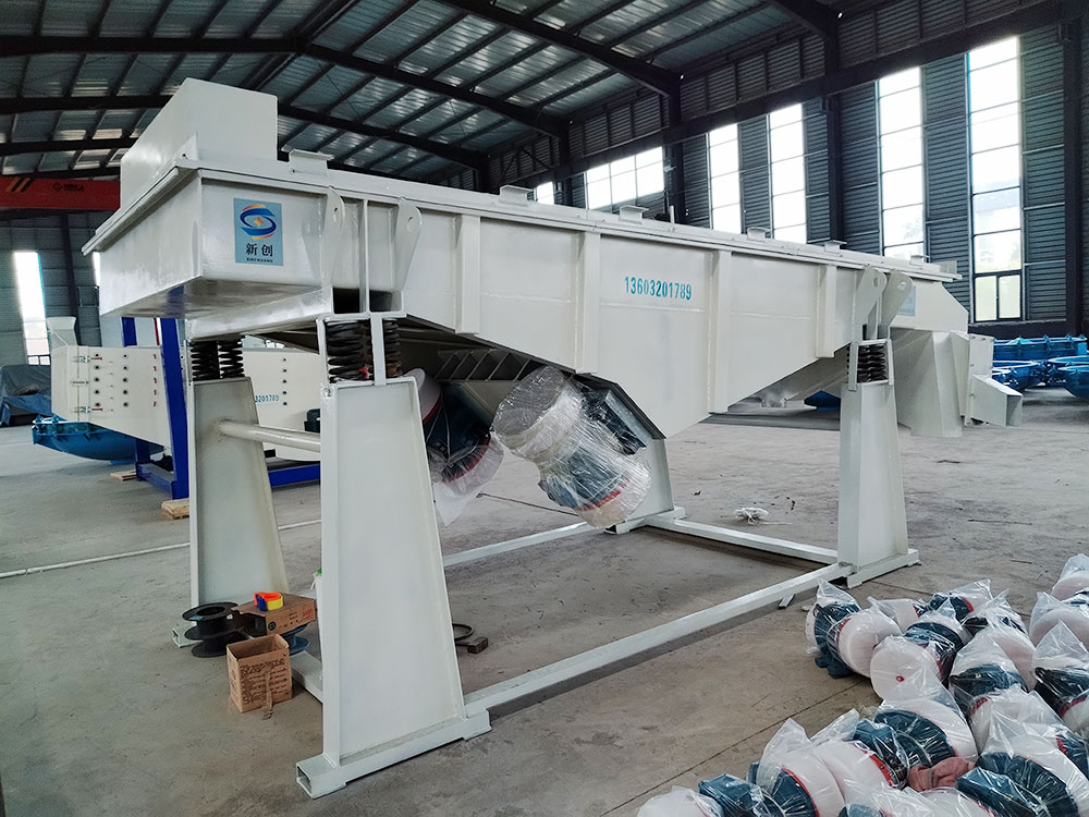 產(chǎn)品描述: 用于煤炭、水電、礦山、建材、化工、塑料、磨料、醫(yī)藥、糧食、炭素、化肥等行的設(shè)備 直線篩(直線振動(dòng)篩)利用振動(dòng)電機(jī)激振作為振動(dòng)源,使物料在篩網(wǎng)上被拋起,同時(shí)向前作直線運(yùn)動(dòng),物料從給料機(jī)均勻地進(jìn)入篩分機(jī)的進(jìn)料口,通過多層篩網(wǎng)產(chǎn)生數(shù)種規(guī)格的篩上物、篩下物、分別從各自的出口排出。具有耗能低、產(chǎn)量高、結(jié)構(gòu)簡單、易維修、全封閉結(jié)構(gòu),無粉塵溢散,自動(dòng)排料,更適合于流水線作業(yè)?! 」ぷ髟怼 SG系列振動(dòng)篩工作時(shí),兩電機(jī)同步反向旋轉(zhuǎn)使激振器產(chǎn)生反向激振力,迫使篩體帶動(dòng)篩網(wǎng)做縱向運(yùn)動(dòng),使其上的物料受激振力而周期性向前拋出一個(gè)射程,從而完成物料篩分作業(yè). 直線振動(dòng)篩是雙振動(dòng)電機(jī)驅(qū)動(dòng)。當(dāng)兩臺(tái)振動(dòng)電機(jī)做同步、反缶旋轉(zhuǎn)時(shí),其偏心塊所產(chǎn)生的激振力在平行于電機(jī)軸線的方向相互抵消,在垂直于電機(jī)軸的方向疊為一合力,因此篩機(jī)的運(yùn)動(dòng)軌跡為一直線。兩電機(jī)軸相對(duì)篩面有一傾角,在激振力和物料自重力的合力作用下,物料在篩面上被拋起跳躍式向前作直線運(yùn)動(dòng),從而達(dá)到對(duì)物料進(jìn)行篩選和分級(jí)的目的。適用于粒度在0.074-5mm、含水量小于70%、無粘性的各種干式粉狀物料的篩分。給料粒度不大于10mm。 DZSF直線振動(dòng)篩主要特點(diǎn)及適于行業(yè): 篩分精度高、處理量大、結(jié)構(gòu)簡單、耗能少、噪音低、篩網(wǎng)使用壽命長、密封性好、極少粉塵溢散、維修方便、可用于流水線生產(chǎn)中的自動(dòng)化作業(yè)?! V泛應(yīng)用于化工、食品、塑料、醫(yī)藥、冶金、玻璃、建材、糧食、化肥、磨料、陶瓷等行業(yè)中干式粉狀或顆粒狀物料的篩分?! 』咎攸c(diǎn) 穩(wěn)定可靠、消耗少、噪音低、壽命長、振型穩(wěn)、篩分效率高等?! ZSF直線振動(dòng)篩主要特點(diǎn): 1、密封性好、極少粉塵溢散?! ?、耗能少、噪音低、篩網(wǎng)使用壽命長?! ?、篩分精度高、處理量大、結(jié)構(gòu)簡單?! ?、全封閉結(jié)構(gòu)、自動(dòng)排料、更適合于流水線作業(yè)。 5、篩體各部分均采用扎制鋼板及型材焊接而成(部分組體間為螺栓連接)整體剛度好,牢固可靠。